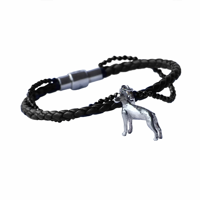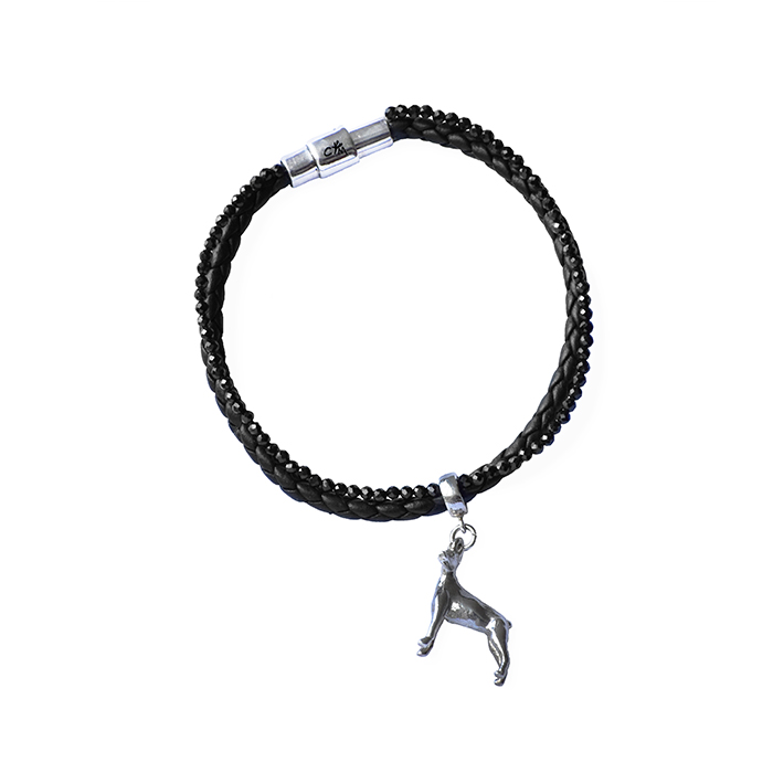 A happy symbol in the shape of your best friend in silver 925 combined with fine work in soft and braided leather and fine gemstones together as a bracelet. A jewel to be stylish with your favorite pet.
