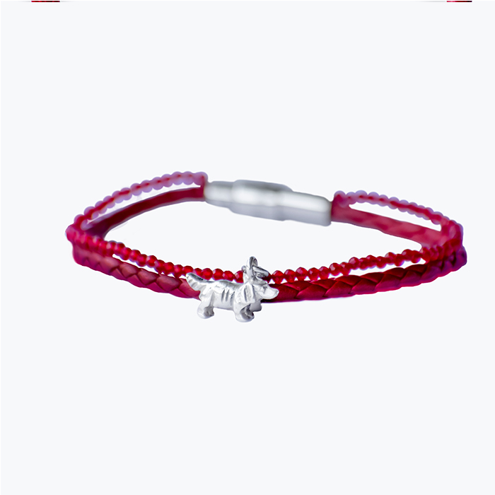 A happy symbol in the shape of your best friend in silver 925 combined with fine work in soft and braided leather and fine gemstones together as a bracelet. A jewel to be stylish with your favorite pet.